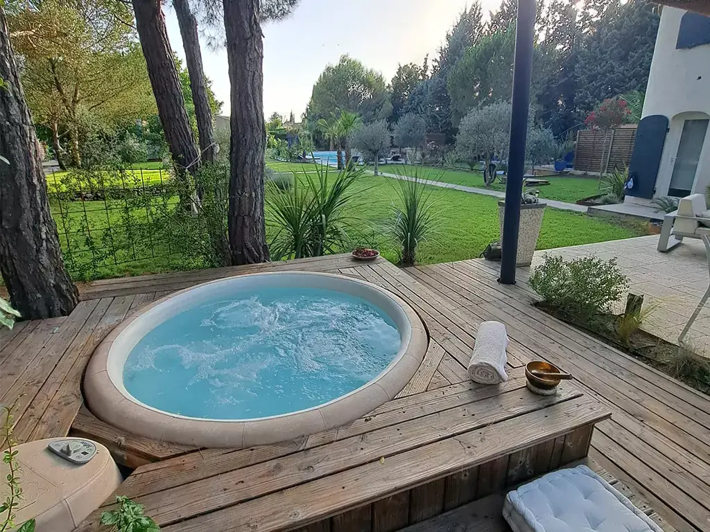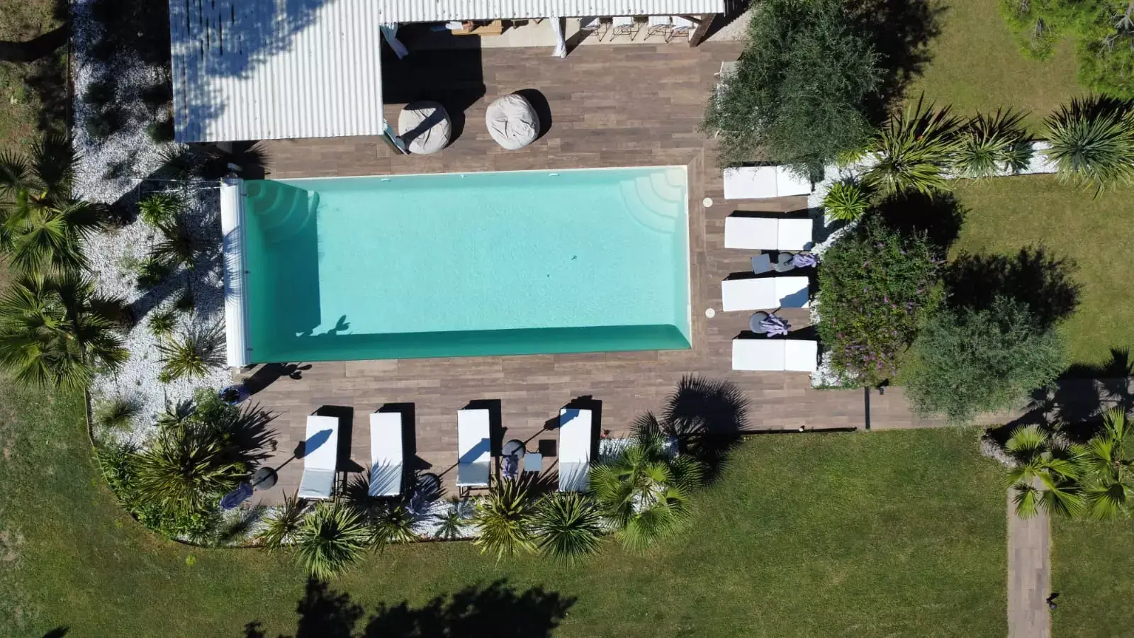 - Espace détente avec jacuzzi, piscine et lounge extérieur.