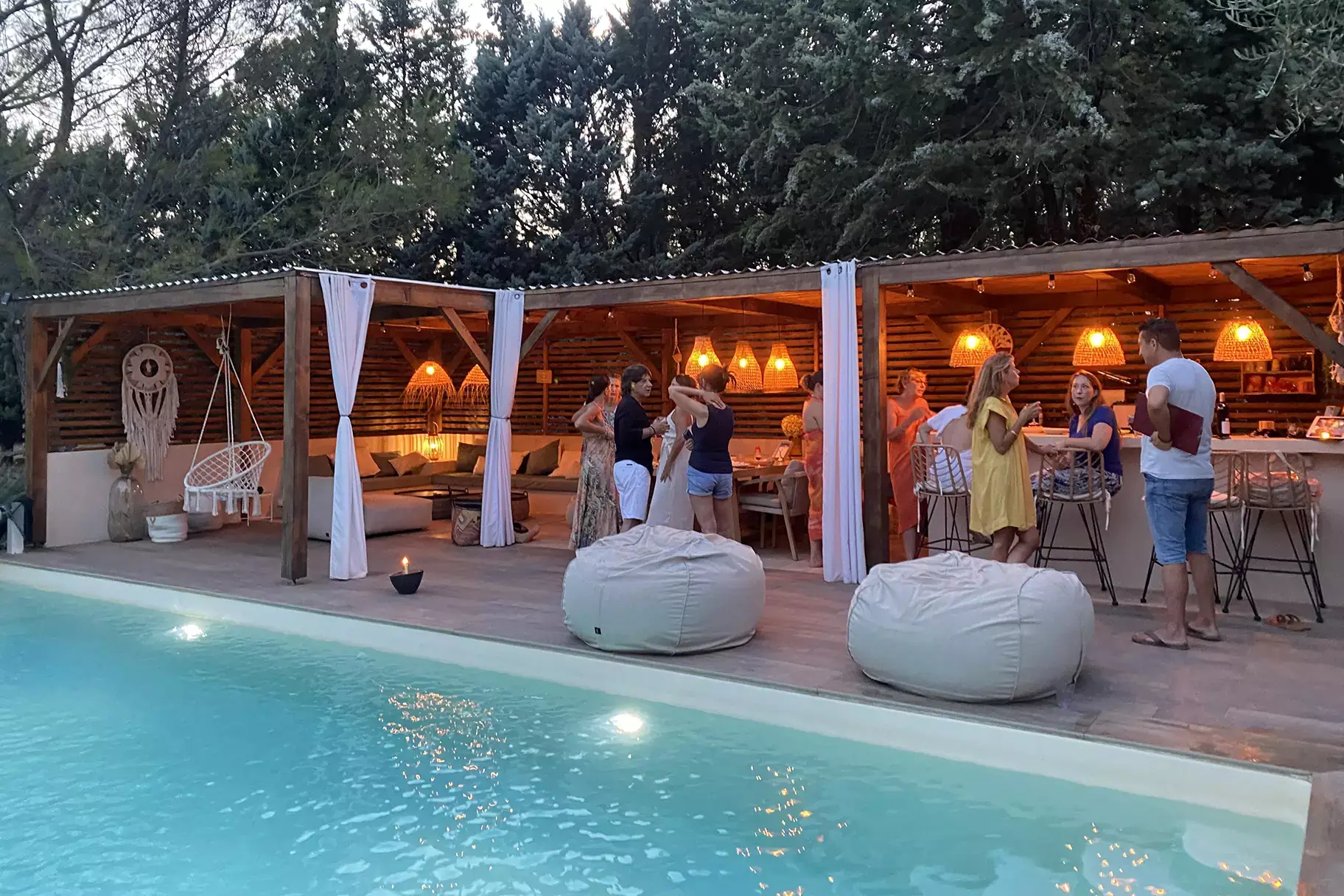 - Le Poolhouse et son coin lounge, idéal pour les moments de relaxation en plein air.